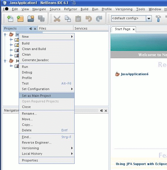 Man kann Netbeans 6.5 kann man auf der Konsole mit dem Befehl