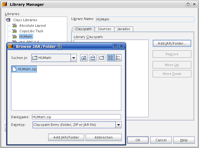 und geben den Namen der Bibliothek ein, z.B.: HUMath
