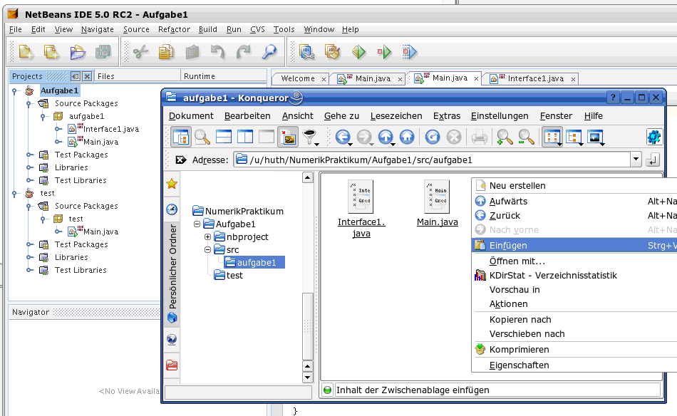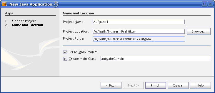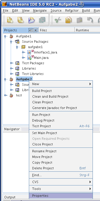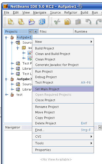 Hier muss zum Beispiel zuerst das Project Aufgabe1 zum Main